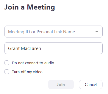 4. Select if you would like to connect audio and/or video and click Join.